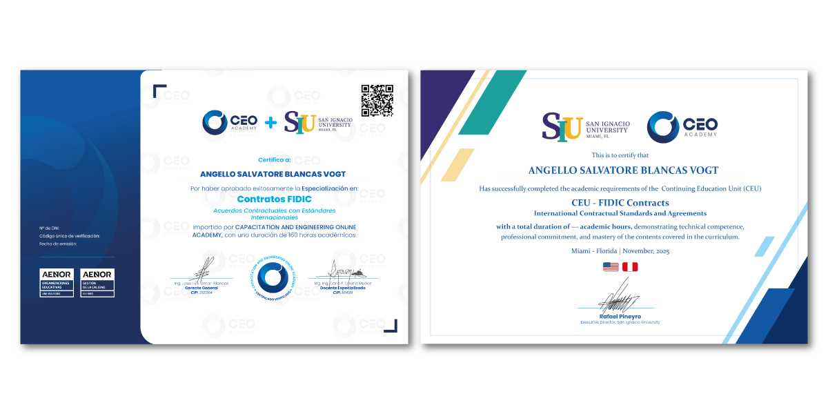 • Creación y presentación de un proyecto práctico con un Contrato FIDIC.