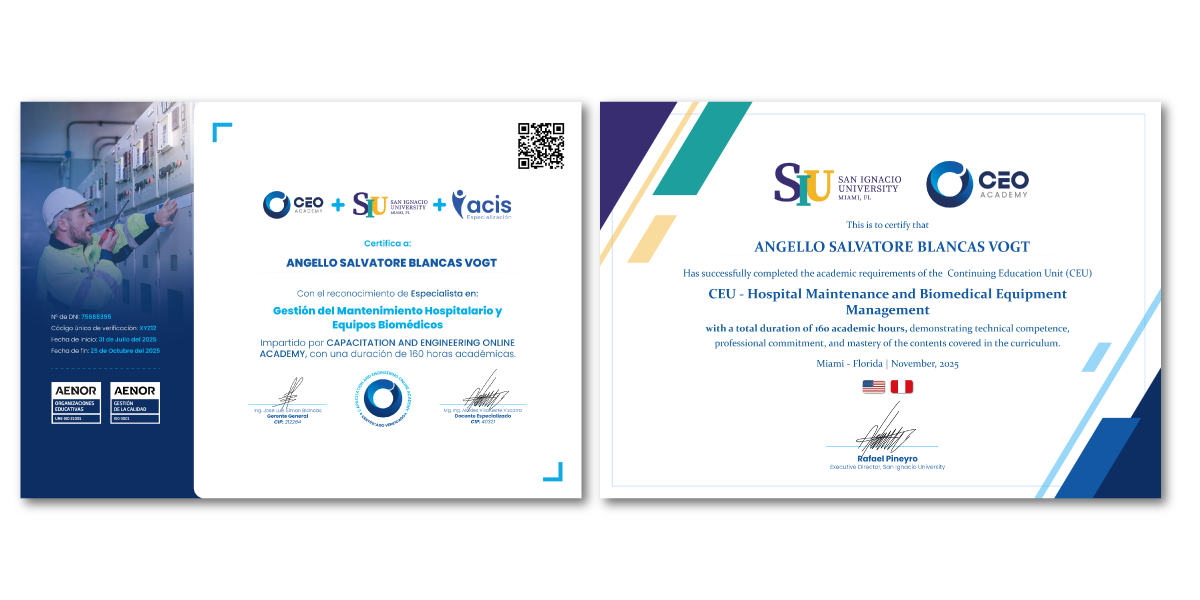 - Primera certificación a nombre de CEO Academy (160 horas académicas), respaldada por las normas internacionales ISO 21001:2018 e ISO 9001:2015.